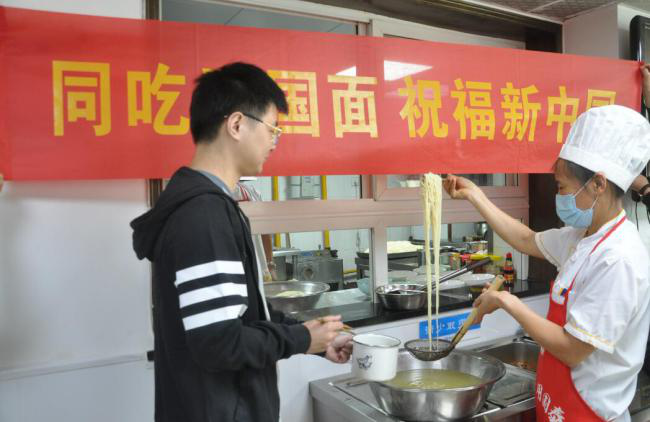 兩江建設(shè)公司員工 同吃愛國面 祝福新中國