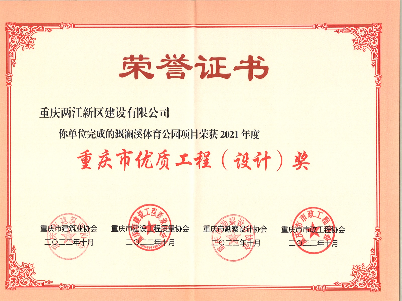 兩江建設(shè)公司承建的溉瀾溪體育公園工程榮獲2021年度重慶市優(yōu)質(zhì)工程獎