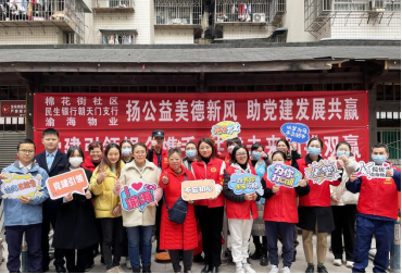 在第60個(gè)學(xué)雷鋒紀(jì)念日來臨之際,為傳承雷鋒精神,認(rèn)真貫徹落實(shí)黨的二十大精神,深化黨建引領(lǐng)網(wǎng)格共建、銀企共贏,讓雷鋒精神在新時(shí)代綻放更加璀璨的光芒。渝海物業(yè)與民生銀行朝天門支行,以服務(wù)客戶為重點(diǎn),聯(lián)合棉花街社區(qū)在都市庭園小區(qū)開展了“揚(yáng)公益美德新風(fēng),助黨建發(fā)展共贏”主題活動,為都市庭園小區(qū)業(yè)主提供上門清潔服務(wù),防詐宣傳、磨刀、口腔義診等便民活動,用實(shí)際行動弘揚(yáng)雷鋒精神。