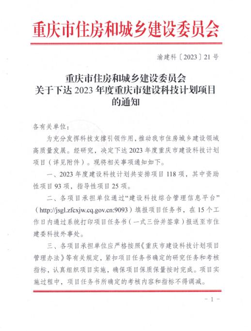 兩江建設(shè)公司一課題獲重慶市住建委立項