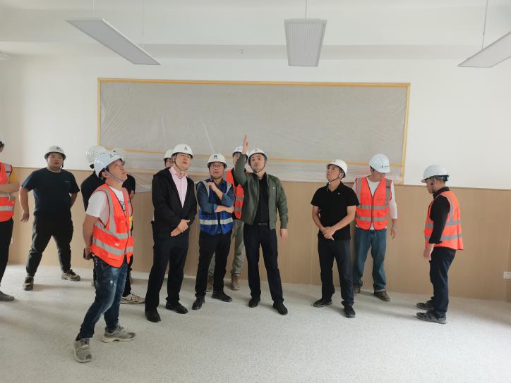 陳閣琳副總工程師對項目的各個建設環節都給予了高度關注,來到施工現場,他首先對教室及廁所工程樣板間進行了深入細致的實地考察,對樣板間的整體質量進行了細致的評估。