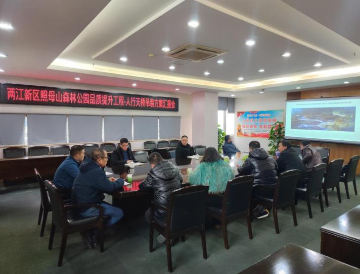 公司組織召開兩江新區照母山森林公園品質提升工程——人行天橋鋼箱梁吊裝方案匯報會