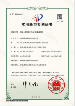 近日,兩江建設公司又喜獲國家知識產權局一項實用新型專利技術。此實用新型專利技術名稱:《混凝土螺機輸料管出口防遺漏裝置》專利號:ZL202322711394.9,該專利授權又實現了兩江建設公司在科技創新工作方面的新突破。